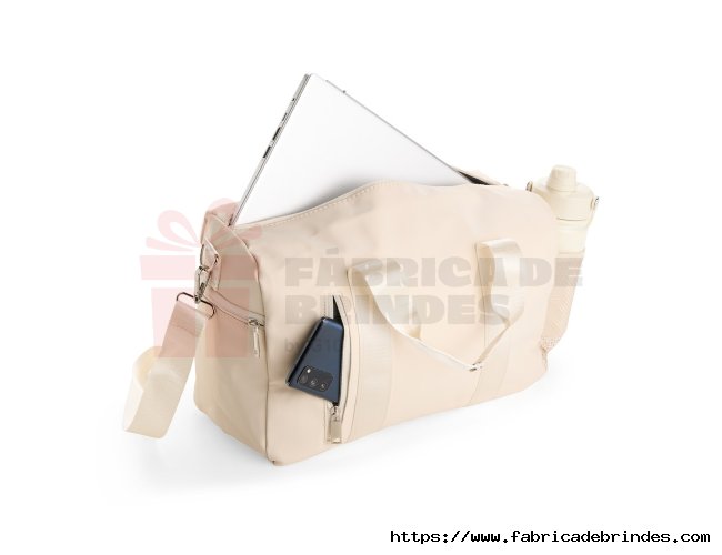 Bolsa confeccionada em couro sintético impermeável com fechamento em zíper e capacidade máxima de 20 litros. Apresenta compartimento interno revestido em nylon e bolso dedicado a objetos menores. Possui dois compartimentos externos em tamanhos diferentes, bolso em tela de nylon e três alças: duas de mão e uma transversal removível. Medidas: 28cm x 36cm x 19cm.