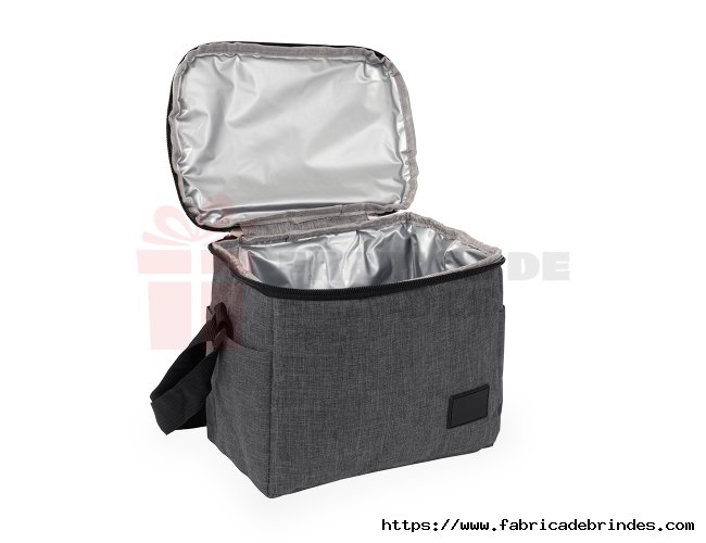 Bolsa térmica confeccionada em Oxford 300D resistente à água com capacidade máxima de 6 litros, fechamento em zíper e plaquinha personalizável em plástico costurada na parte frontal. Possui revestimento térmico antivazamento em PEVA, dois bolsos laterais, alça de mão superior e alça transversal ajustável. Medidas: Altura: 18,5cm x Largura: 22cm x Profundidade: 13,5cm x Comprimento: alça 62,5cm.