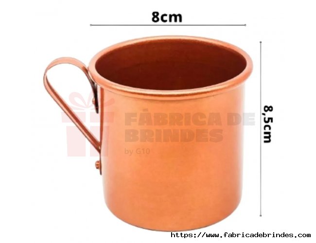 Caneca para vários drinks e coquetéis, sendo mais utilizado para preparar coquetéis como variações de Moscow Mule entre outros. Em alumínio pintado na cor cobre é um modelo com custo benefício baixo que é muito bem aceita em bares, eventos ou em casa. Indicada para uso residencial ou comercial. Leve e no tamanho ideal para beber seu drink gelado. Pode ser reutilizada várias vezes. Não amassa fácil. Reduz o custo de reposição. Medidas: Diâmetro: 8cm x Altura: 8,5cm.