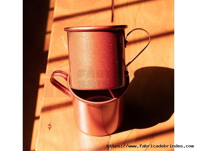 Fabricada em alumínio pintado na cor cobre, essa caneca se destaca pela leveza e resistência. Diferente de outros materiais mais frágeis, o alumínio oferece maior durabilidade no uso diário.
