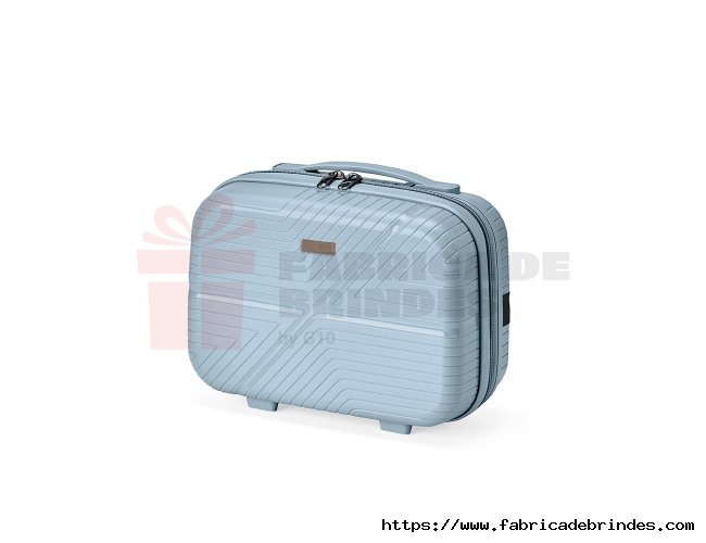 Frasqueira personalizada, frasqueira de viagem em plástico rígido com capacidade de até 10 litros. Apresenta três compartimentos internos, incluindo bolso em tela de nylon com zíper. Além disso, possui quatro apoios reforçados na parte inferior, alça de mão e elástico na parte posterior para encaixe em malas maiores. Acompanha placa em metal para personalização. Medidas: altura: 25cm x Largura: 33cm x Profundidade: 15cm.